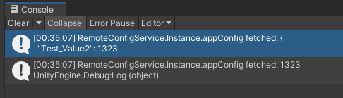 Debug.Log("RemoteConfigService.Instance.appConfig fetched: " + RemoteConfigService.Instance.appConfig.GetInt("Test_Value2"));